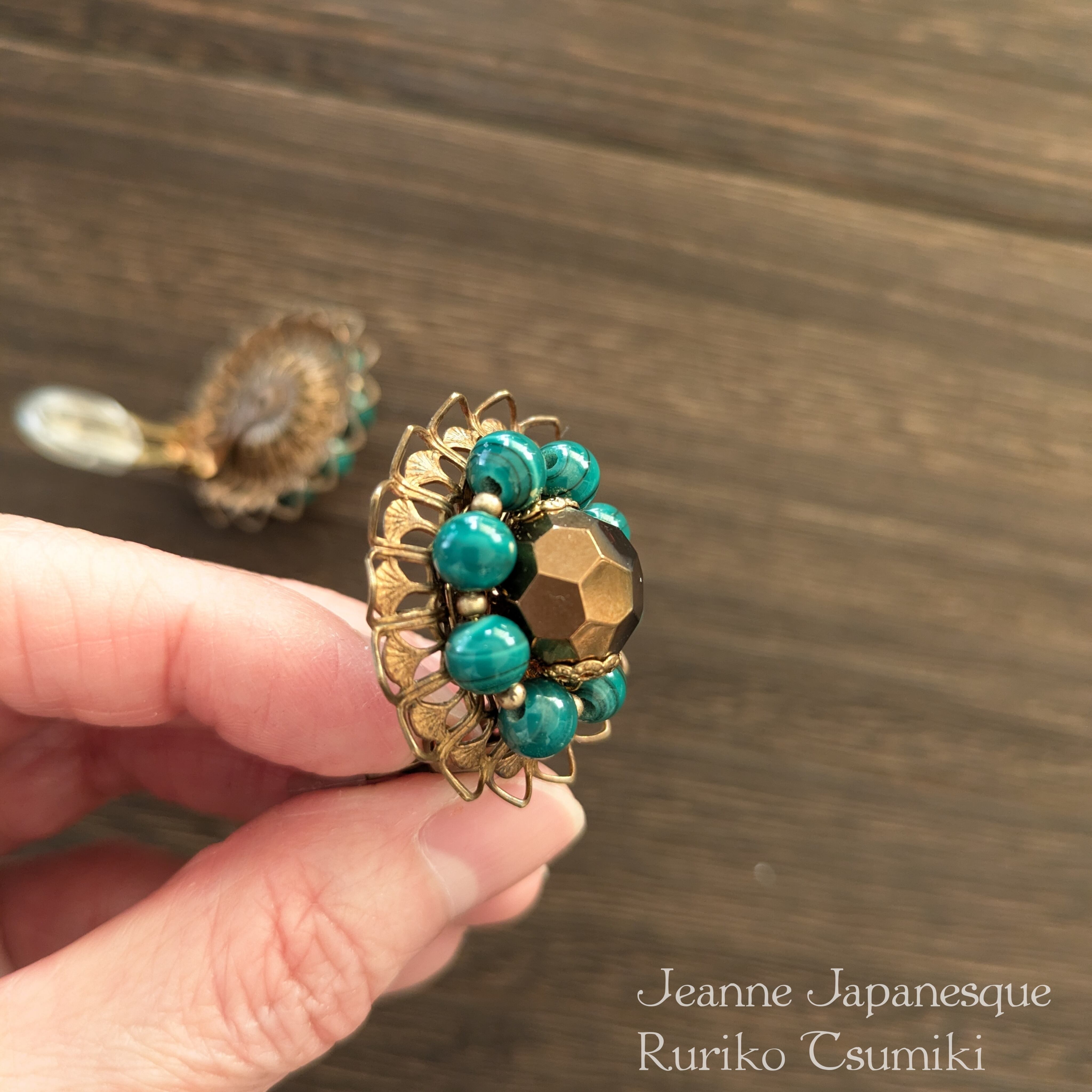 RT-125 マラカイト色花イヤリング