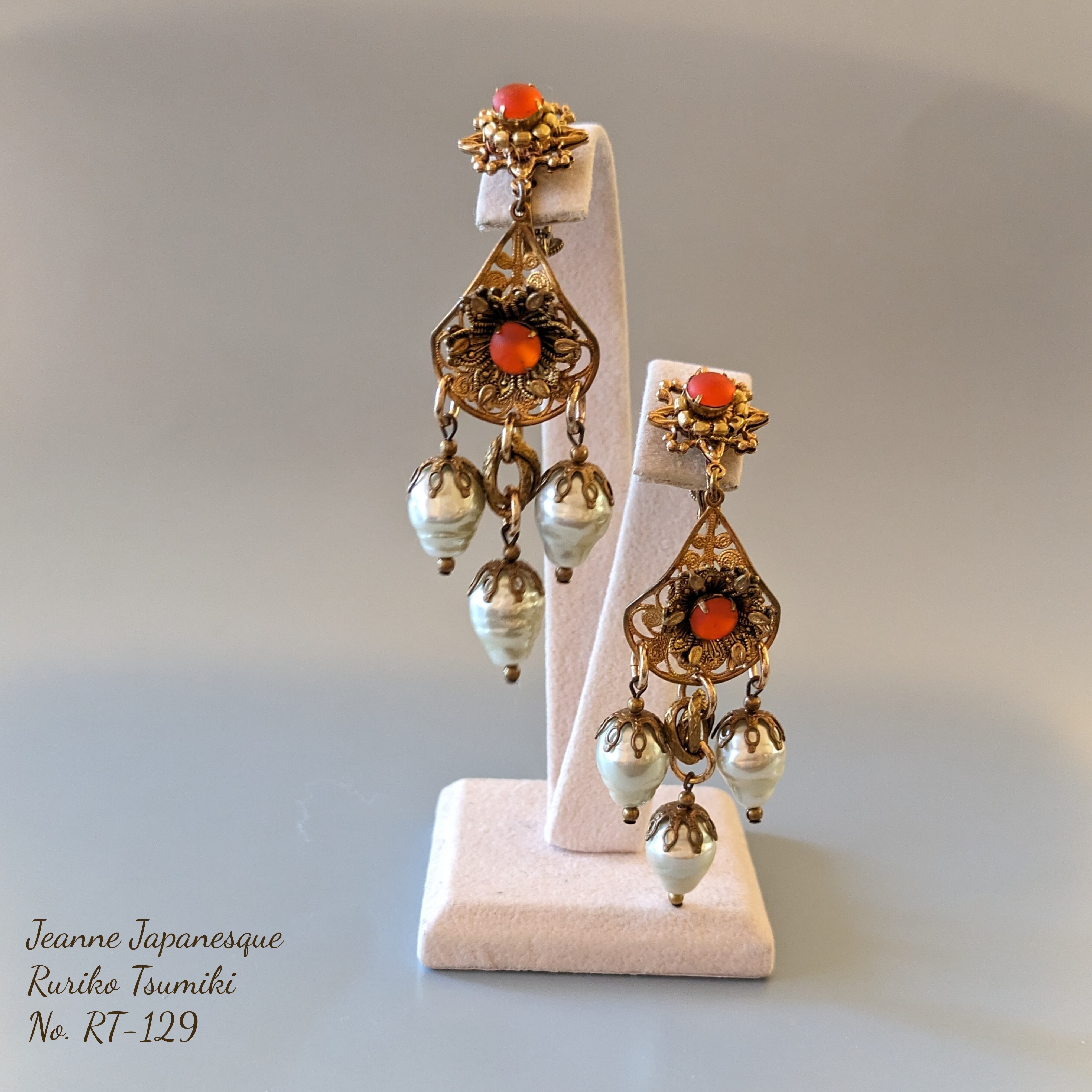 RT-129 情熱の灯オレンジとバロックパールのシャンデリアイヤリング
