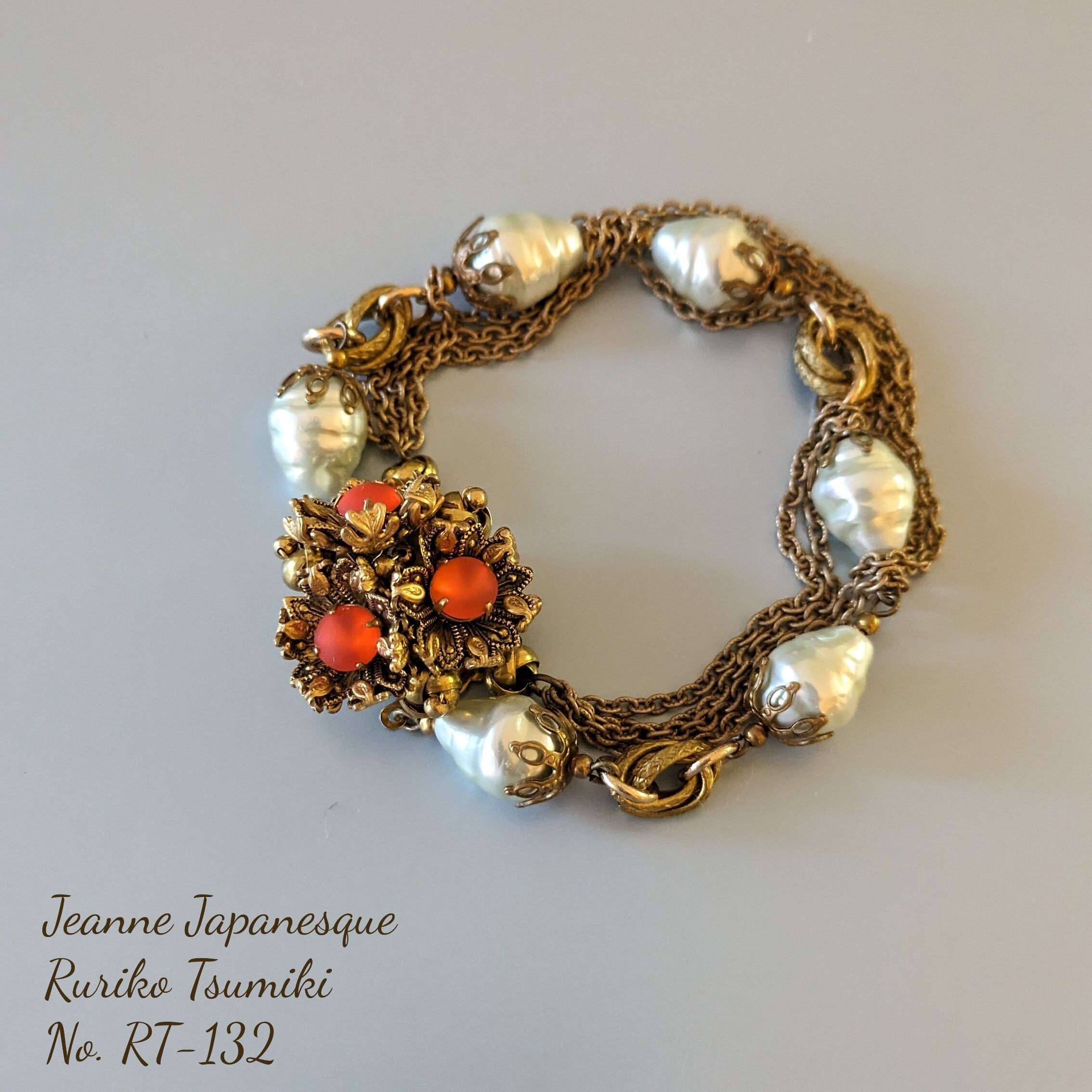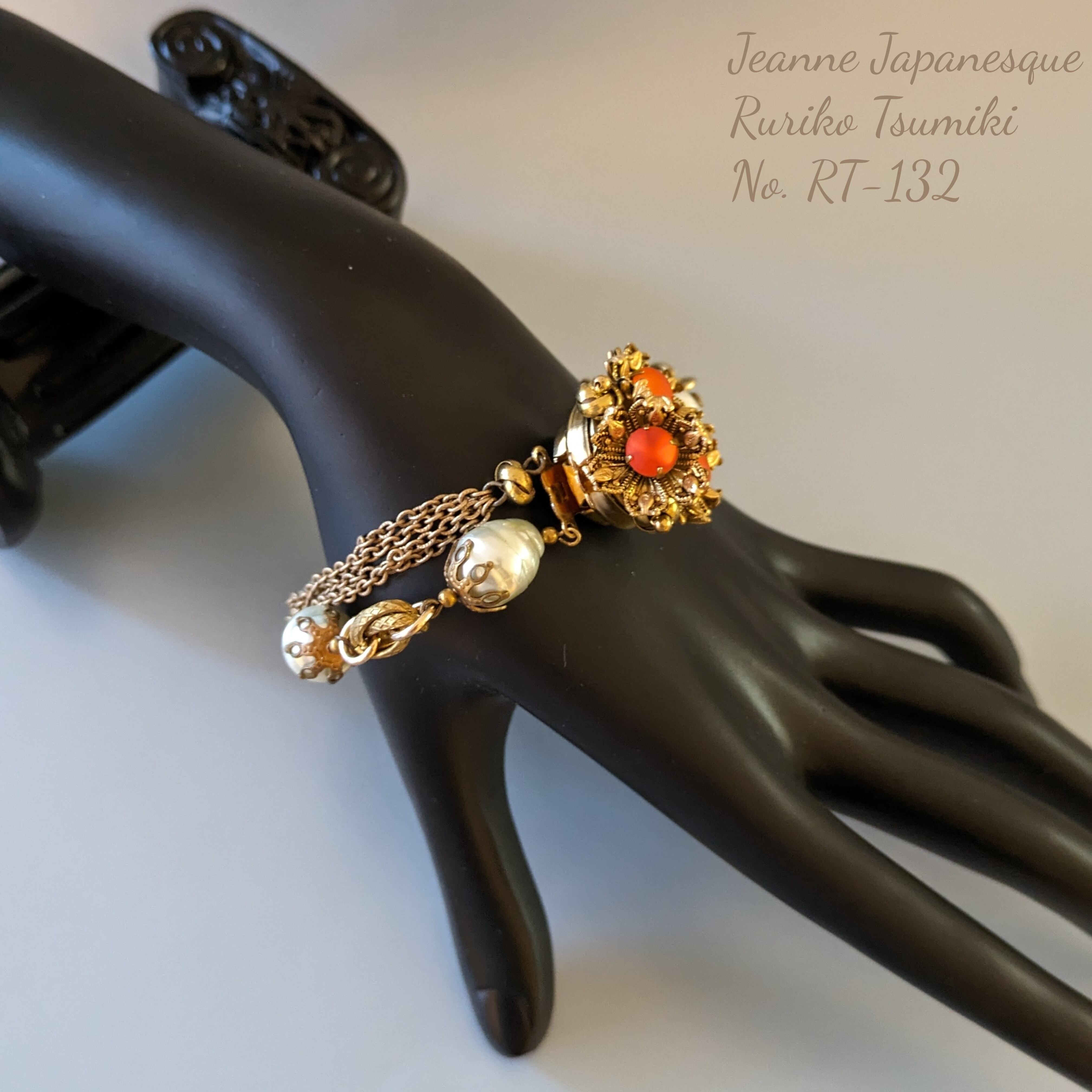 RT-132 情熱の灯オレンジとバロックパールブレスレット