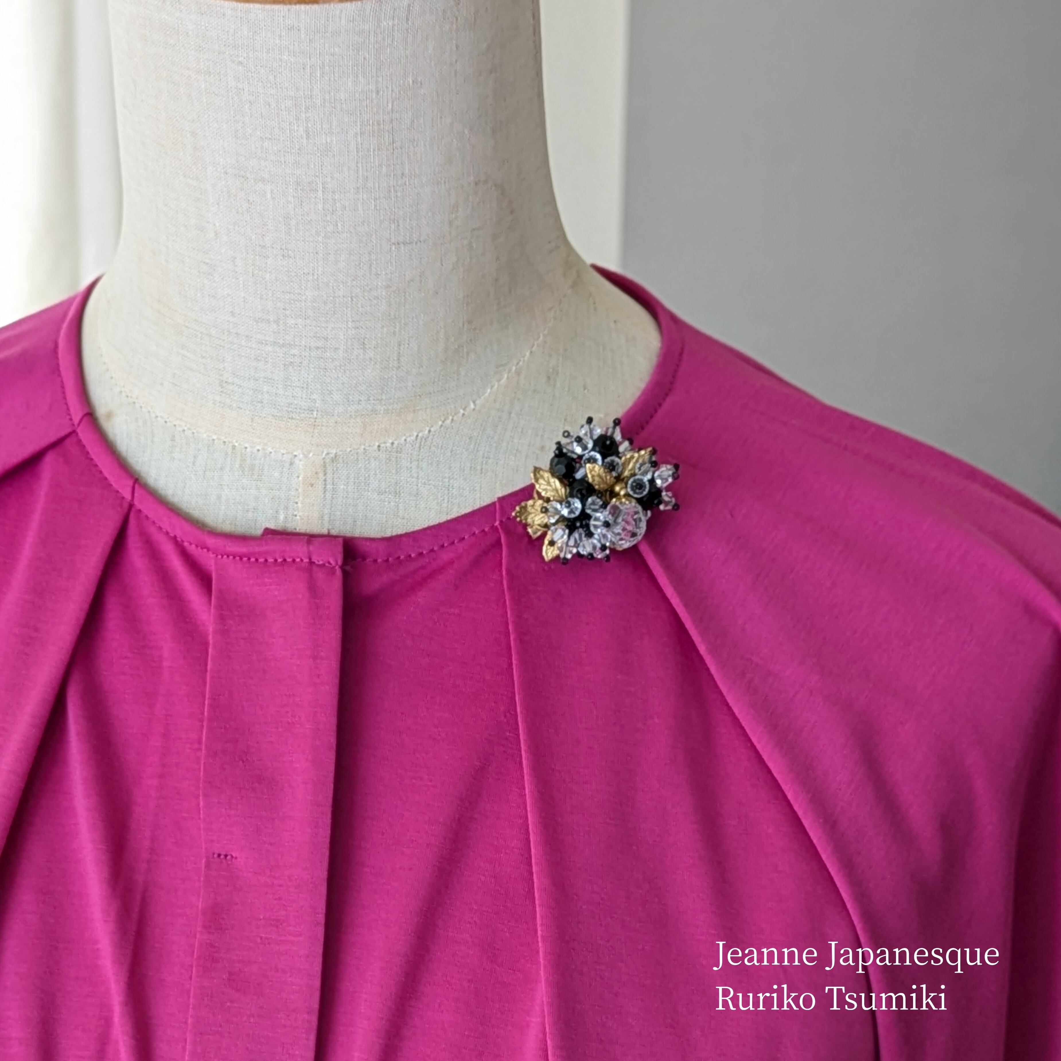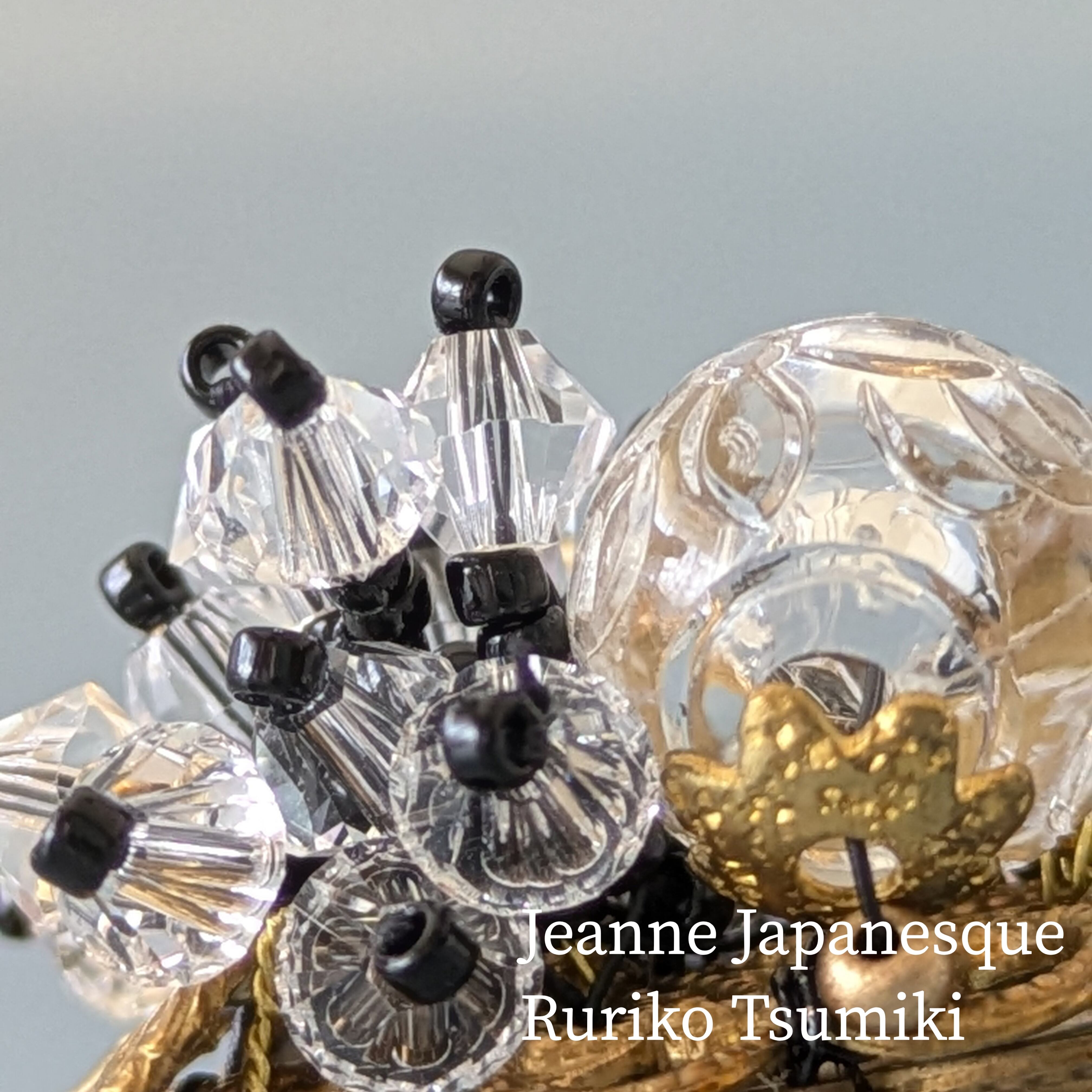 スワ〇フスキーガラスビーズを贅沢に使い黒が織りなす影と光を