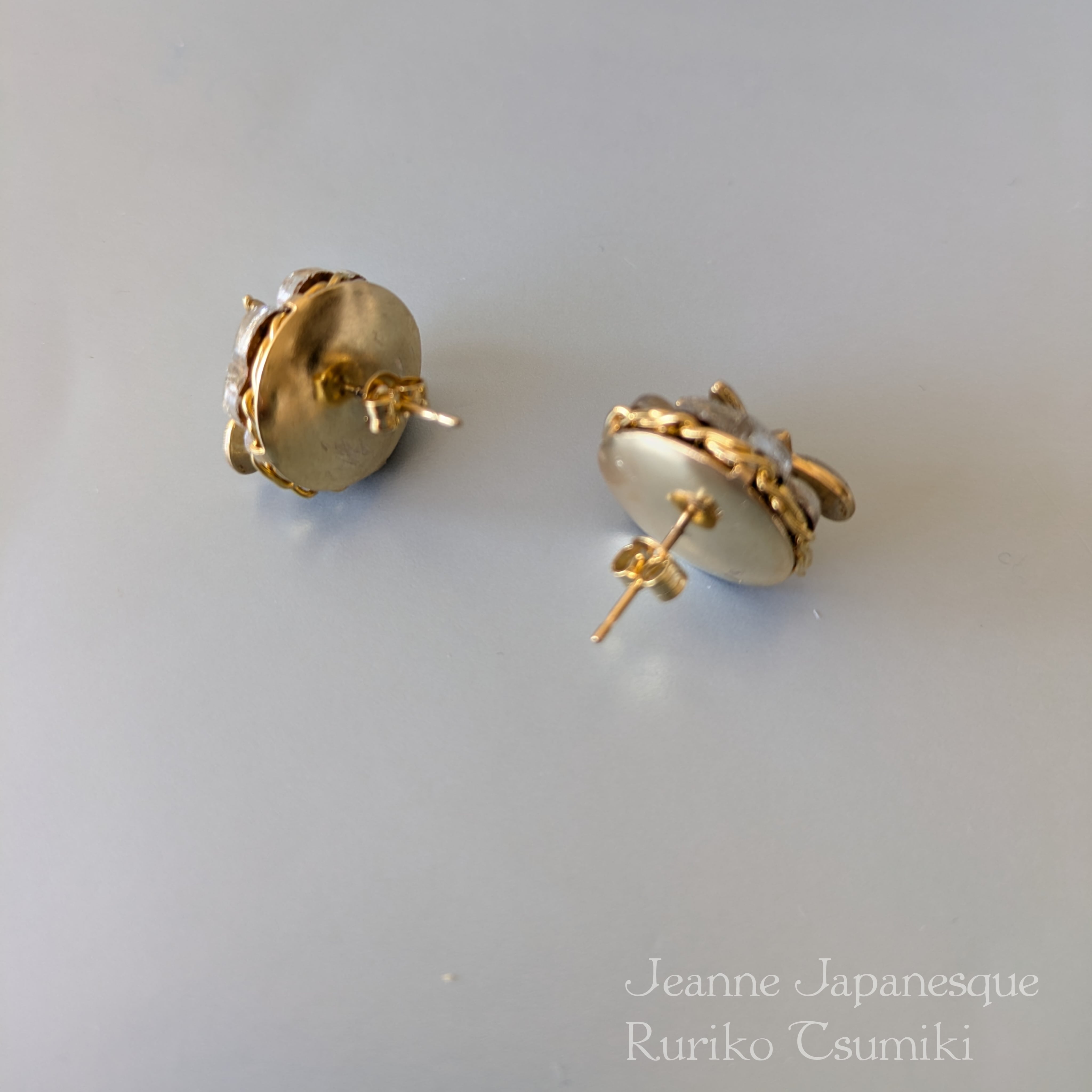 側面も隙のないようにデザインチェーンで飾りお耳で上品にきらめくピアスです。